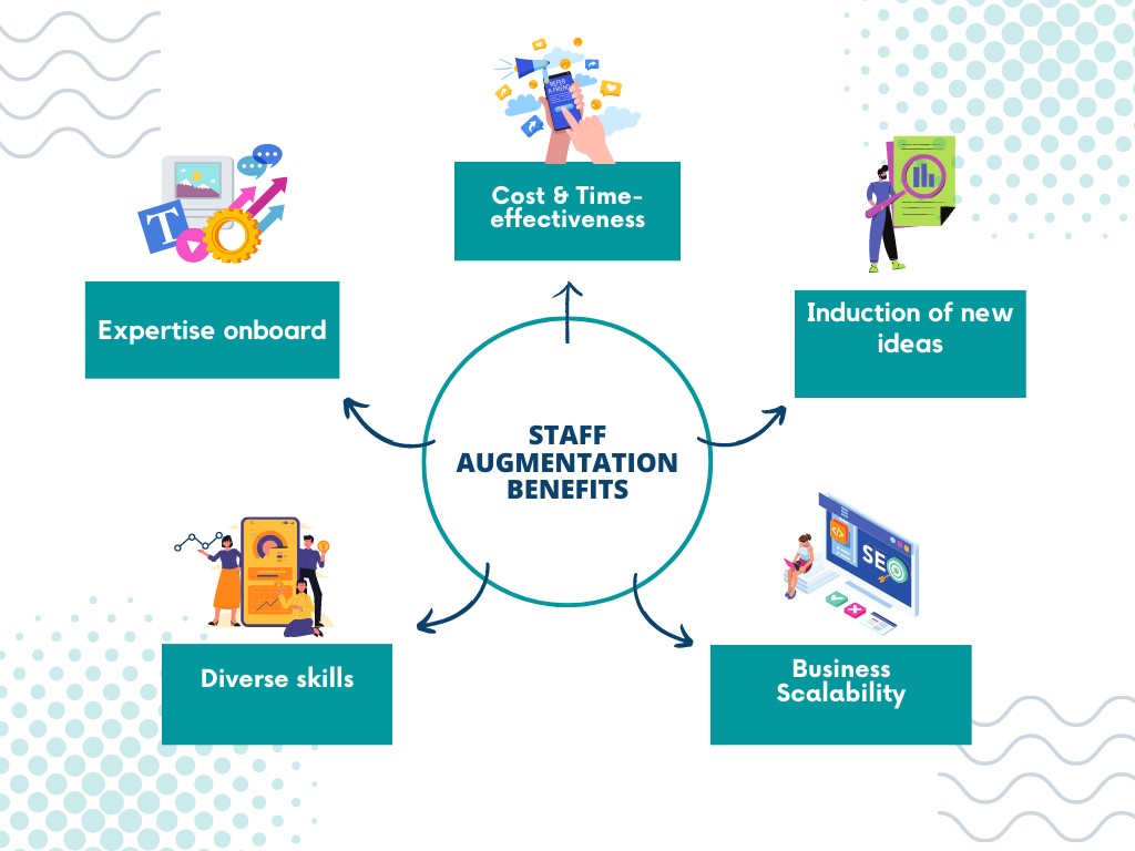 The staff augmentation reduces the costs on HR, Administration Costs, Staff costs (healthcare, insurance, taxes and other benefits)
